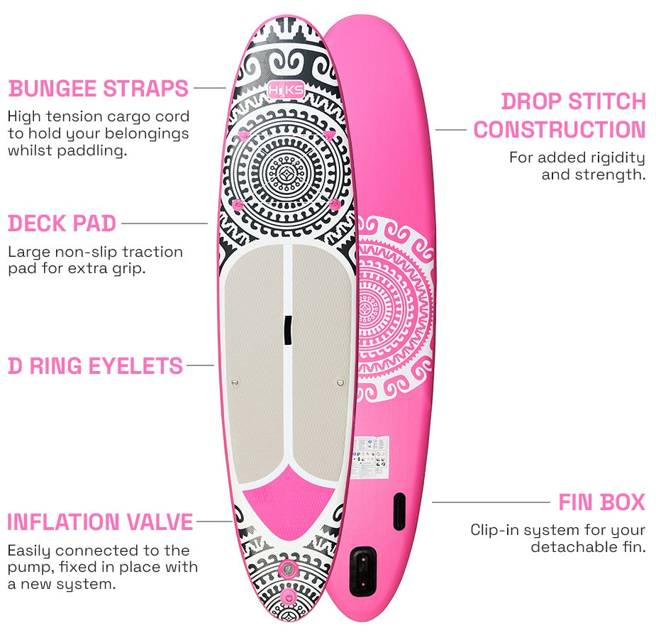 HIKS 11'2FT / 3.4M INFLATABLE STAND UP PADDLEBOARD ( SUP ) SET - TRIBAL SAMOA - PINK